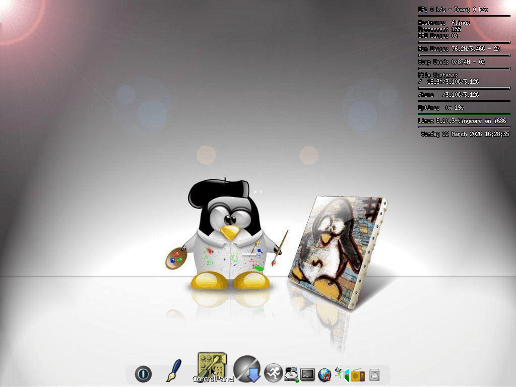 This minimalist and modern distribution is a fork of Tiny Core Linux 17. It uses Linux kernel 5.10 and glibc 2.42, and is available for x86 (32-bit) systems only.