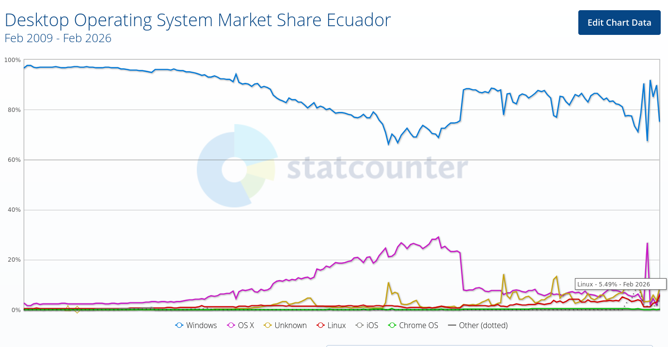 2024: In Ecuador, GNU/Linux Adoption Surged From Under 1% to Over 4% in About 3 Years