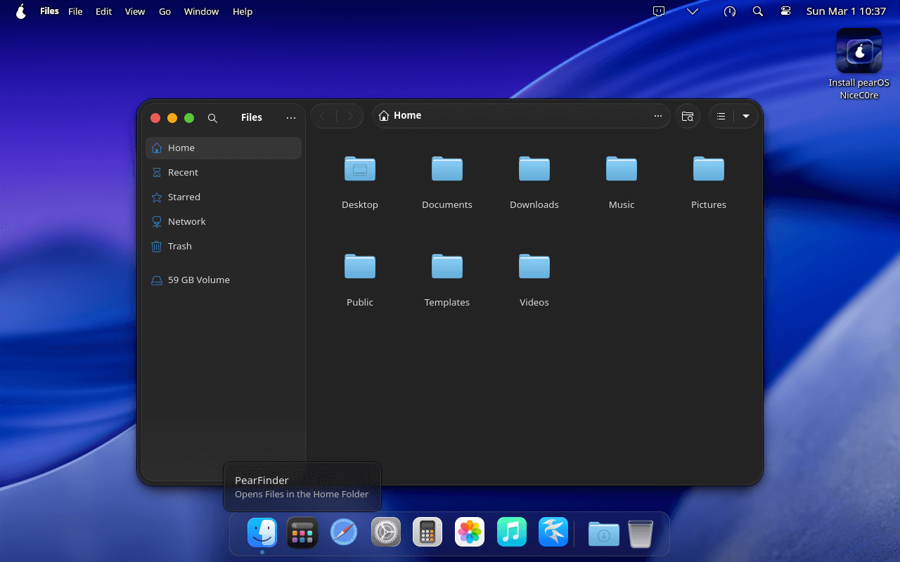 The distribution includes its own installation tool, the pearOS Installer, along with a dedicated welcome application to help users get started. For file management, it ships with GNOME Files.